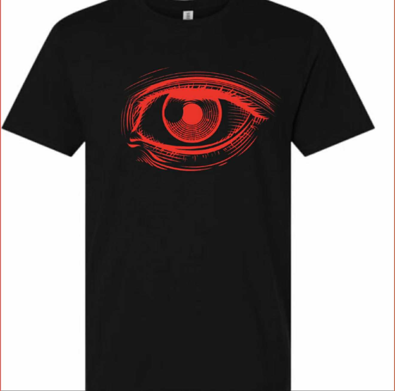 Red eye in the center. Its very detailed to show how closely people be watching you while raising kids.